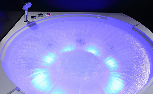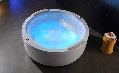 配置:电脑控制感应式触摸面板,一键式进水+冷热水LED控制开关(隐藏式进水),2.0HP 360 度LED豪华圆形瀑布按摩+1.0HP冲浪按摩(6个喷嘴,两组单独循环系统),蓝牙+内置防水音响,非接触感应式缺水保护,U型管溢水系统,2个彩色池底灯,脚踏去水,管道清洗,浴缸枕头